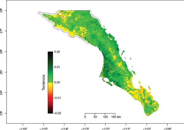 Trend in the Normalized Difference Vegetation Index (NDVI) in the Southern Part of Baja California Peninsula