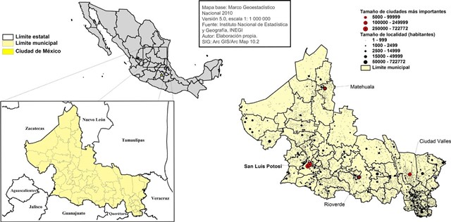 Para los fines de este trabajo se eligió al estado de San Luis Potosí (SLP), ubicado en el centro-norte del territorio mexicano, que ocupa el octavo lugar en riesgo de mortalidad por CC de las 32 entidades que conforman el país (Lazcano-Ponce et al., 2008; WHO, 2012) y con una población en riesgo de 925 688 mujeres de 15 años de edad y más (INEGI, 2010).