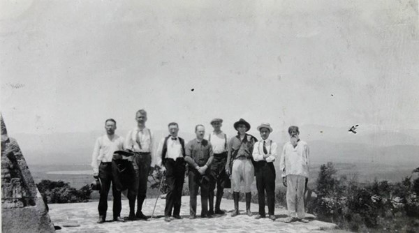 La figura del guía local es importante al menos en estas primeras salidas. Sobre todo las efectuadas a lugares en los que existían yacimientos arqueológicos o cuando se efectuaban recorridos largos y en los que las posibilidades de perderse eran considerables. Éste podía ser una persona de la localidad quien, con calzón, manto y sombrero, acompañaba a los exploradores hacia las altas montañas o al destino que se terciase, aunque no siempre sucedía así (Figura 3). Había personas nativas de algún lugar de interés de visita, que podían residir por razones laborales en ciudad de México y que dado el caso podían desempeñarse como guías del grupo. En otras ocasiones, sobre todo en áreas con zonas arqueológicas, existía ya alguna persona que fungía como “guardián” o “velador” y que a un precio módico les explicaba historias de la tradición oral o que aleccionado con lo que expertos del tema le pudieran haber explicado, repetía con mayor o menor imaginación lo escuchado. En todo caso, el guía parecía saber lo que podía ser atractivo a los visitantes y se los mostraba. Eso podía ser desde cuevas interminables -túneles de lava— a pinturas rupestres o campos llenos de tepalcate (cerámica troceada y dispersa). En cualquier caso, el guía parece ser la contraparte del excursionista, tanto en su origen rural, en su forma de vestir y en sus costumbres, como en la forma de pensar y actuar, y era el vínculo con lo que podían considerarse las esencias del país. En cualquiera de los casos, el socio del CEM parece ser una persona interesada no únicamente por la parte deportiva de las excursiones, sino que parece poseer un afán de conocimiento amplio. La admiración hacia el pasado remoto, el colonial y hacia las bellezas naturales de esta parte central del país, con sus paisajes de la montaña y la alta montaña, se reflejarían en una mayor querencia hacia lo patrio y en un mayor interés por la historia y la cultura de los pueblos prehispánicos, así como una mejor comprensión del período colonial. En definitiva, se ama lo que se conoce y los miembros del CEM se muestran especialmente receptivos a caminar y a aprender.