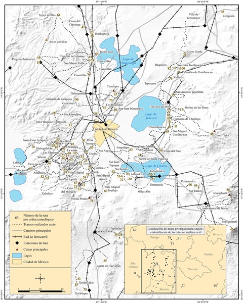 The study the origins of hiking in Mexico is highly relevant from the geographic standpoint. The early itineraries and objectives of hikers, as well as the stories they developed from each field trip, are a source for the historical geographic knowledge of mountainous areas, which are usually forgotten and overlooked. They also allow us to get closer to the role played by the associations of hikers as communicators of national social values and knowledge. A geographical reading of hiking should address at least three aspects: first, the location of places visited; second, aspects observed in them, if at all; and third, the perceptions and feelings of hikers in those places or along the paths chosen. This article focuses explores the origin of organized hiking in Mexico, its objectives and scope over the first three years of existence. We will focus particularly on the first aspect mentioned, i.e. the destinations and routes employed by hikers, supplemented with references to the observations made, from the review of the documents and publications of one of the oldest formally established associations of Mexico, the Club de Exploraciones de México (Hikers’ Club of Mexico, CEM). Created in 1922 from an initiative of the Californian Otis Mc Allister, CEM is a good example of an association that has inspired many generations of young men and women, for nearly a century, to carry out an activity considered by them to be more than a sport. In this first approach from historical, political and social scenario of hughe changes, we explore the concerns of this group that met periodically to walk around and get to know the geographical environment in their surroundings. The idea of McAllister was to charter an association similar to the Sierra Club, in California, in which, in addition to being a member, he was also the son and nephew of two of its founders. The mission of the Club, the social characteristics of its members and the analysis of more than a hundred of field trips between 1922 and 1924 reveal the importance of hiking as a social practice and as a means for the communication of national values; the relevance of the contact with the natural environment in the formation of an individual; and the role of hiker clubs in the discovery and knowledge of the national relief. Among the key findings, we can affirm that the Mexican hiking, at least in its early stages, seemingly was not driven by scientific curiosity, unlike European and North American alpine clubs. As in Europe, the Mexican hiking was an urban phenomenon led by middle-class citizens who wanted to make good use of leisure time while broadening the knowledge of the country through its mountains. It also had a nationalist side, reflected in its coat of arms and the exaltation of human growth through contact with nature and physical activity. Field trips carried out by CEM in its first two years indicate an interest for national emblematic places, such as archaeological zones (Teotihuacán-Acolman, Cuicuilco-El Pedregal, Huexotla, Tepozteco, Xochicalco, Tezcotzingo), some of which were in process of recovery and restoration. Also of interest were areas of pre-Columbian and colonial historic-artistic value such as Tepozotlán, the convent of Los Remedios and the aqueduct (Naucalpan, State of Mexico), Tepoztlán (Morelos); forest areas and other areas of unique natural beauty (El Chico, Zempoala lagoons and Hueyapan); and peaks located relatively close that promised spectacular panoramic views (Ajusco, Cerro San Miguel, Coconetla). There was no apparent systematic exploration plan behind these destinations, from either a chronological or a geographical standpoint. Instead, the selection criteria seemed to have been based on a certain historical tradition of beautiful sites whose knowledge led to others. On the other hand, destinations were selected were according to accessibility by transportation means, as these played a key role in the expansion of its geographical range. Although hikers converse spatially with the territory by traveling across it on foot, most of the goals of the hiking club would not have been possible without transportation means. The territorial structuring conformed by the network of trains and trams allowed traveling to places that were frequently remote, at a time when owning a vehicle was uncommon and the road network was still to be consolidated in Mexico.