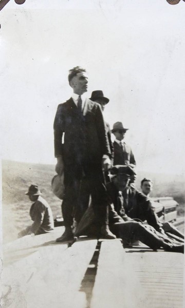 En algunos casos, cuando las salidas podían llegar a ser multitudinarias, se empezó a solicitar servicios exclusivos de las compañías de ferrocarril para los socios. Es notable el interés de McAllister, autor de la mayoría de las reseñas excursionistas de esta primera etapa del Club, por testimoniar el habitual uso que hacían de este medio de transporte. Incluso en las propias fotografías que se conservan en el archivo del CEM, muchas son tomadas desde los vagones. Pareciera que transmiten una cierta predilección por este medio de transporte; incluso por las poses de los fotografiados, en actitudes intrépidas sobre el techo del vagón. Esas imágenes transmiten un auténtico espíritu aventurero y nos invitan a pensar que la aventura no era tan solo el destino al que llegar sino desde el mismo instante en que salían de la urbe (Figuras 5 y 6).