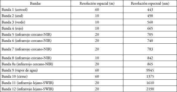 Recientemente, la Agencia Espacial Europea (European Space Agency, ESA) comenzó la operación de varios satélites denominados SENTINEL, los cuales destacan por su alta resolución espacial, además de ser gratuitos para el público y tener cobertura mundial, (European Space Agency-España, 2017: 1).