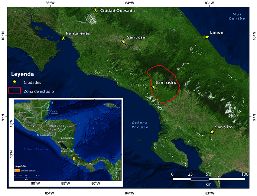 El área de estudio se encuentra ubicada en su mayoría en la provincia de San José, en el cantón de Pérez Zeledón, aunque también abarca pequeñas porciones de la provincia de Puntarenas, Cartago y Limón. Dicho territorio se localiza entre las coordenadas geográficas: 9° 12’ 46” - 9° 35’ 03” Latitud Norte y 83° 28’ 47” - 83° 49’ 07” Longitud Oeste (Figura 1).