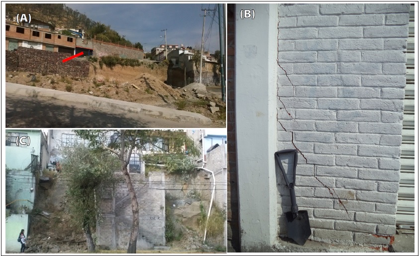Actualmente se reportan grietas en la carpeta asfáltica de algunos viales, agrietamiento en muros de hogares y bloques de rocas de aproximadamente 5 m de diámetro, que en diferentes momentos han impactado el Paseo de los Matlazincas, principal vía de comunicación del área (Figura 1). En estas circunstancias, resulta de vital importancia la generación de una cartografía, que zonifique los diferentes niveles de susceptibilidad a los desprendimientos rocosos. Esta representación cartográfica permitiría tomar decisiones para la aplicación de medidas de prevención o mitigación, en un contexto de planeación local, para los sitios prioritarios más amenazados.