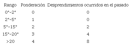 Según la metodología descrita, las zonas reveladas como de alta y muy alta susceptibilidad, desde la óptica geomorfológica, son sitios de pendientes superiores a los 20°, con una disposición geométrica espacial de sus laderas, planos de falla y echado de los estratos, que favorecen considerablemente el desarrollo de una energía potencial, desde el punto de vista físico, para la caída de rocas.