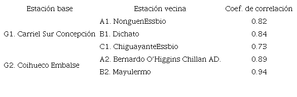 Esta selección de estaciones puede ser corroborada por la alta correlación entre los datos de las estaciones vecinas y la estación base (Cuadro 3).
