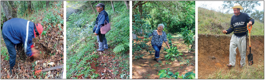 Las UFI ayudaron a identificar unidades homogéneas, las cuales, posteriormente, fueron recorridas a pie con los informantes, elegidos por haber representado al ejido con algún cargo. En este caso se seleccionaron cuatro informantes para realizar los recorridos: el Sr. Israel Armenta, el Sr. Cruz Estrada, la Sra. Carmen Salazar y el Sr. José Salazar (Figura 2).