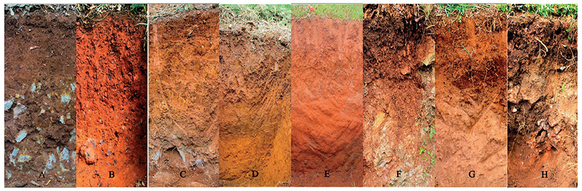 Como se podrá observar, las identificación de tierras representativas se basó en características físicas, las cuales son reconocidas a simple vista por los informantes (Figura 7): estructura, textura, pedregosidad, profundidad y color. A partir de esto se identificaron las clases de tierra Cascajillo (a), Cascajillo rojo (b), Cascajillo amarillo (c), Barrial (d), Barrial roja (e), Polvillo (f ), Tepetate (g) y Negra (h); todas pueden presentar variantes y también algunas combinaciones que son poco representativas. Cabe resaltar que todas las clases sirven para producir café y otros productos agrícolas; sin embargo, algunas necesitan más trabajo que otras.