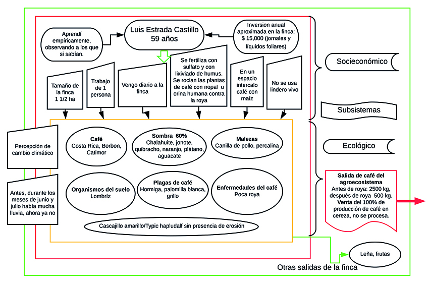 Los AES cafetaleros pueden lograr ciertos niveles de autosuficiencia ya que tienden a coexistir con una parte del ecosistema natural (Jiménez-Avila y Gómez-Pompa, 1982). El cultivo de café es importante en países megadiversos como Colombia, Brasil y México (Mittermeier, Myers, Thomsen y Olivieri, 1998). Moguel y Toledo (1996) mencionan que las principales áreas cafetaleras coinciden con áreas prioritarias para la conservación. Sin embargo, en México los AES cafetaleros se enfrentan a la caída de la producción ocasionada por la roya Hemileia vastatrix (Escamilla y Landeros-Sánchez, 2016).
