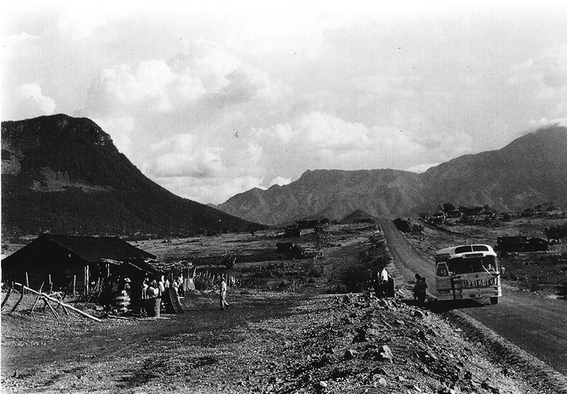 Las más de 200 diapositivas del viaje de Orlando Ribeiro y Suzanne Daveau a México en 1966, que se encuentran hoy guardadas en la Fototeca del Centro de Estudos Geográficos de la Universidade de Lisboa, corresponden a los registros fotográficos que resultaron de ese mismo viaje. Aún así, en un rápido vistazo a los tres trabajos publicados entre 1967 y 1994, que integraron fotografías pertenecientes a la Fototeca del CEG, constatamos de inmediato la falta de algunos ejemplares que deberían integrar esta colección específica (Ribeiro, 1967a; 1994a; 1994c, pp. 96-98). Entre las fotografías que no constan en el inventario actual se encuentra la imagen que sorprende a los excursionistas de la CRLA en el camino de Infernillo, la cual reproducimos en este artículo, atendiendo, desde luego, al interés documental que tiene para el objeto que tratamos en este texto (Figura 3).