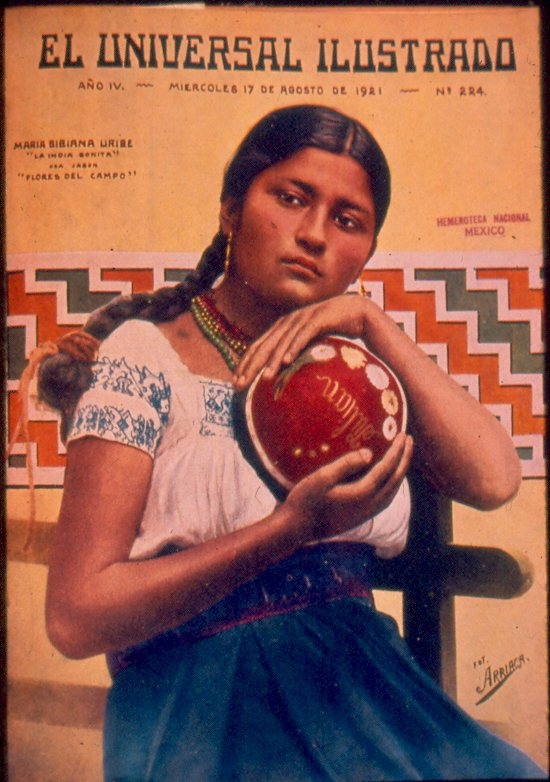 La mujer de esta fotografía fue sometida a un concurso de belleza indígena que organizó el gobierno mexicano en 1921. Un certamen que celebraba el centenario de la consumación de la Independencia. El acontecimiento fue publicitado ampliamente en uno de los periódicos más leídos del momento, “El Universal Ilustrado”, en él aparece la triunfadora, María Bibiana, ataviada con traje típico, posando para la cámara sin mirar de frente, con apenas un asomo de sonrisa. Lo que destacaba a los ojos del jurado era la pureza indígena: el color de su piel morena, ojos negros, estatura pequeña, manos y pies finos, cabello lacio y negro (Ávila y Rodríguez, 2016, párr. 2). Según el periódico, esta mujer pertenecía a la raza azteca. La India Bonita se convirtió en una imagen utilizada en anuncios publicitarios, complementando una estética revolucionaria que llegó a su momento climático en los años veinte cuando “lo indígena” se convirtió en uno de los principales íconos de la nación.