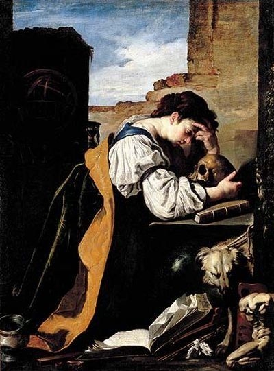 La calavera fue uno de los objetos centrales del arte barroco europeo, tal y como se observa en algunas imágenes influidas por el grabado de Durero, como la Melancolía de Domenico Feti (1614) o la Melancolía de Giovani Benedeto Castiglioni (1610). Estos artistas retoman el gesto del rostro apoyado en la mano y además describen un cráneo, símbolo inequívoco de las vanitas barrocas.