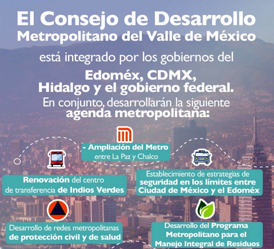Todo parecía ir en el sentido correcto cuando en 2002 en el Estado de México se creó la Secretaría de Desarrollo Metropolitano, sin embargo, en 2014 ésta fue absorbida por la Secretaría de Desarrollo Urbano, quedando en nivel de Subsecretaría; aun siendo la entidad más poblada del país y con más población viviendo metropolitana (14 millones), el gobierno estatal no mostró una idea clara de lo importante que es gobernar esa entidad con visión metropolitana; para su gobierno lo que existe es la Zona Metropolitana Cuautitlán-Texcoco, que para su atención tiene dividida en siete regiones; la ZMVM es una referencia que de vez en cuando aparece en su agenda pública, sobre todo cuando hay conflictos con el gobierno vecino.