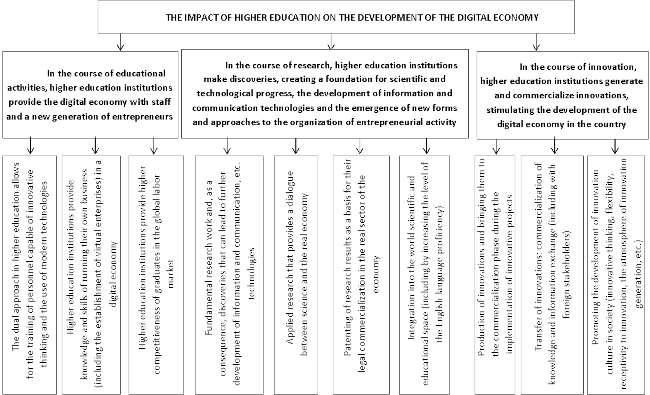 Systematizing, the impact of higher education on the development of the digital economy is manifested in: