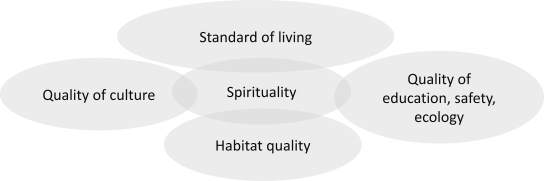 There are two sides to human development: the formation of physiological needs (food, housing, improving health and professional skills) and the benefits that a person can extract for productive activities and active work, cultural and social life, leisure. Based on this, the "quality of life" concept is much broader and contains, in addition to material needs, needs that do not have direct economic expression. For example, environmental cleanliness, habitat safety, human relationships, psychological comfort, cultural values (Smirnov, Sidorina, 2017; Smirnykh, 2011; Sokolova, 2011; Turkina, 2007).