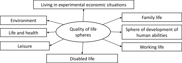 The quality of life is an extensive complex of human life conditions following Figure 3.