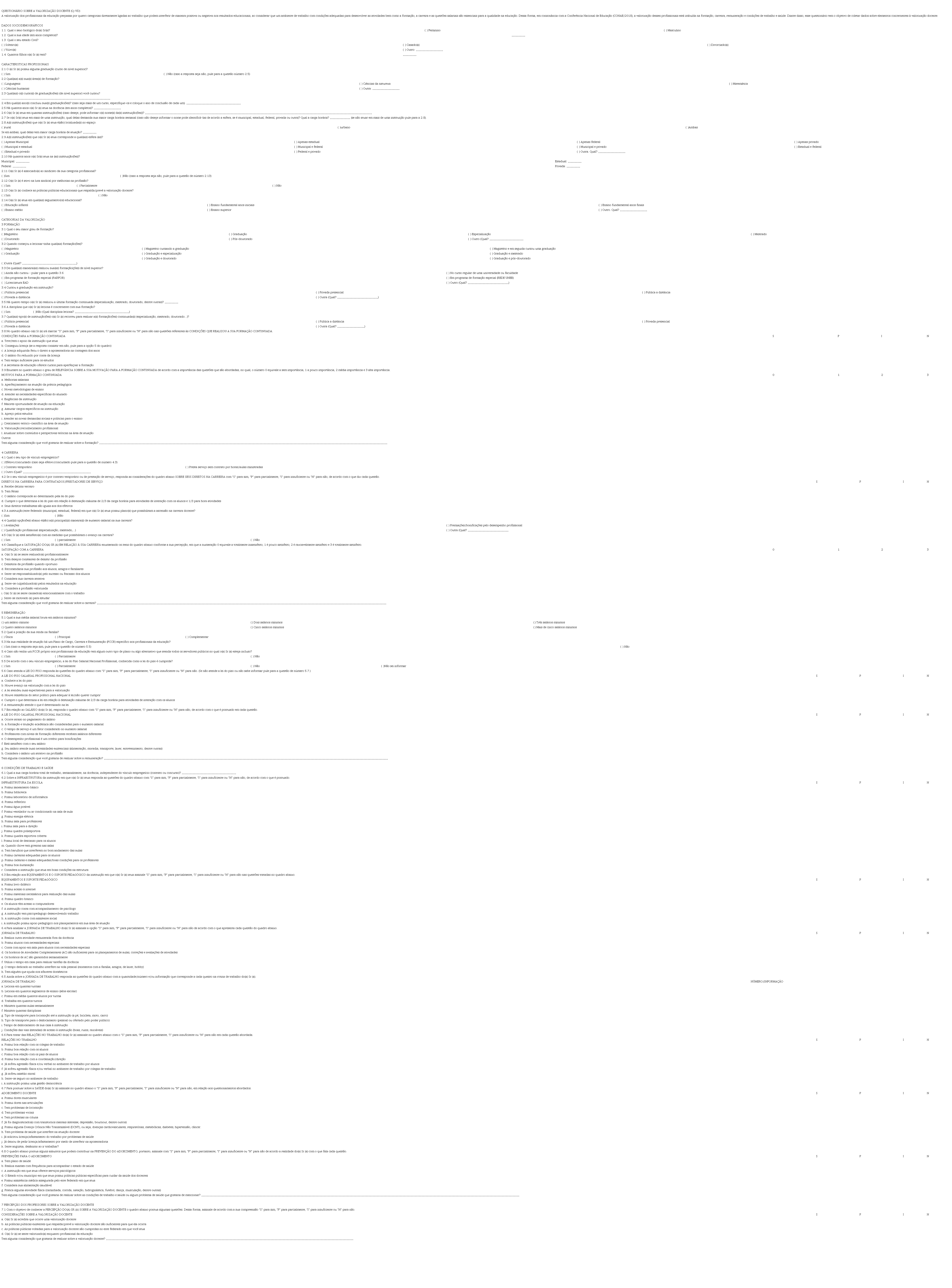 As questões que receberam sugestões e/ou comentários foram 1; 3; 2.1; 2.2; 2.3; 2.4; 2.5; 2.6; 2.7; 2.8; 2.9; 2.10; 2.11; 2.13; 3.1; 3.2; 3.3; 3.5; 3.6; 3.8; 3.9; 4.1; 4.2; 4.3; 4.4; 4.6; 5.3; 6.1; 6.2; 6.4; 6.5; 6.7. As 8 que não passaram por reformulações, apesar da sugestão ou comentário das(os) avaliadoras(es) foram 2.5; 4.4; 6.2; 6.4 (que receberam apenas comentários) e 2.2; 2.9; 2.10; 3.2 (que receberam comentários e sugestões). Assim sendo, 24 questões foram reformuladas, além disso, algumas(uns) avaliadoras(es) também sinalizaram ajustes em pontuações e acentuações gráficas.