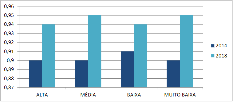 Apesar de o nível socioeconômico estar relacionado a uma determinada condição econômica, não engloba totalmente as especificidades inerentes ao território no qual a escola está localizada, pontuando limites para uma observação que vá além da questão da pobreza. Desse modo, pesquisas recentes enfatizam a relevância na análise da vulnerabilidade social nos territórios escolares como um elemento significativo que interfere na aprendizagem e nas oportunidades educacionais (Vóvio et al., 2019; Ernica & Rodrigues, 2020; Rocha, 2021), contribuindo para o fortalecimento de obstáculos que impedem a evolução mais consistente da equidade educacional, fazendo com que, no território, indivíduos tenham mais dificuldade de acessarem os recursos necessários ao seu desenvolvimento pessoal e profissional (Kaztman, 2000).