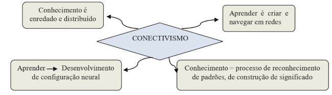 Para os criadores da teoria, Siemens e Downes, o conectivismo integra princípios apresentados pelo caos, redes neurais, complexidade e auto-organização (Scheller, Viali, & Lahm, 2014). De acordo com essa teoria, a aprendizagem é um processo em vários ambientes, os quais dependem da diversidade de opiniões e necessariamente sobre o controle humano. Sendo assim, os autores da teoria, consideravam que o foco da aprendizagem, está na conexão entre as informações, as quais apresentam uma ampliação do estado atual do conhecimento, sendo um dos pontos chaves para a habilidade de estabelecer conexões entre ideias, áreas e conceitos.