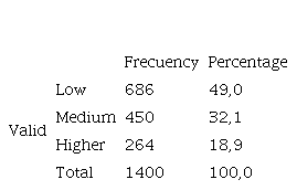 In Table 6, it was observed that of the students that study from 3 to less hours, 25.9% showed a low level; 13.7% a medium level and 7.4% a high level; of those that study from 4 to 5 hours, 15.9% showed a low level; 16.1% a medium level and 5.8% a high level; finally, of those that study more than 6 hours, 7.2% showed a low level; 2.4% a medium level and 5.7% a high level.