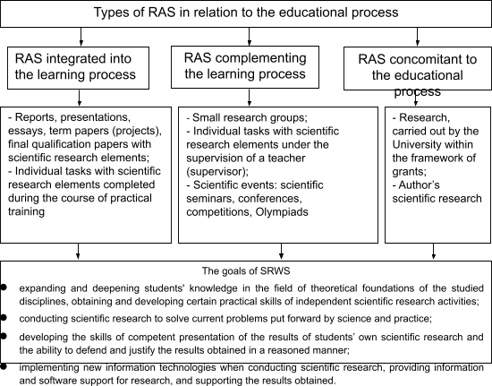 The research activities of students (RAS) include the academic and research work of students (ARWS) and the scientific research work of students (SRWS).
