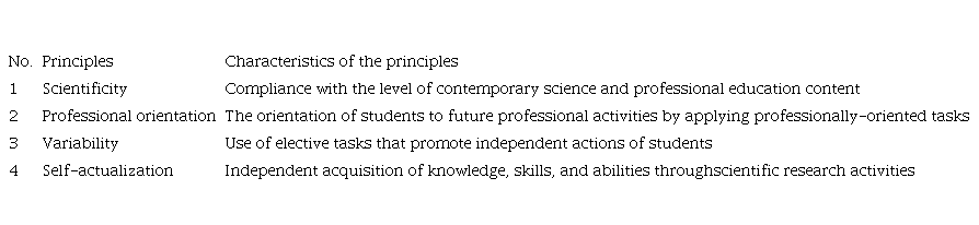 Thus, the SRWS is inextricably linked with the educational process, as a rule, directly at the university departments and faculties, and is based on the principles indicated in table 1.