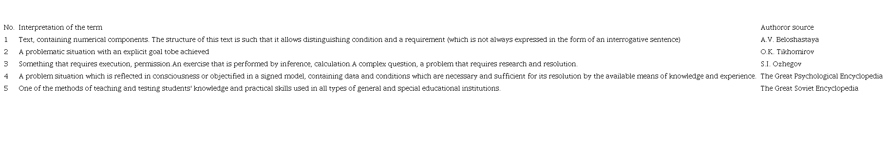 The analysis of pedagogical literature allowed systematizing the definitions of the term "task" (Table 2).