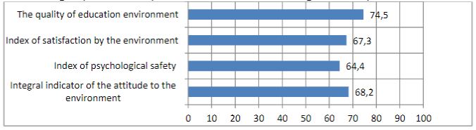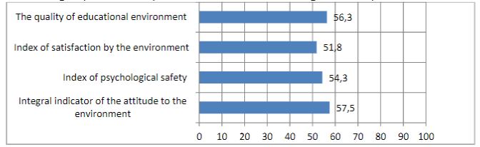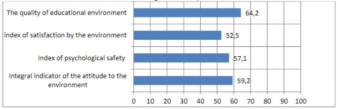 Analysis of the data presented in figure 3 indicates that for students the safety and comfort of the educational environment is relatively favorable, since the indicators are in the range of intermediate values.