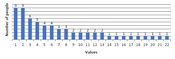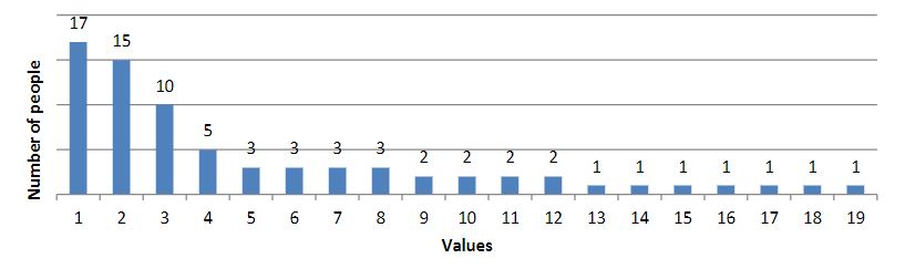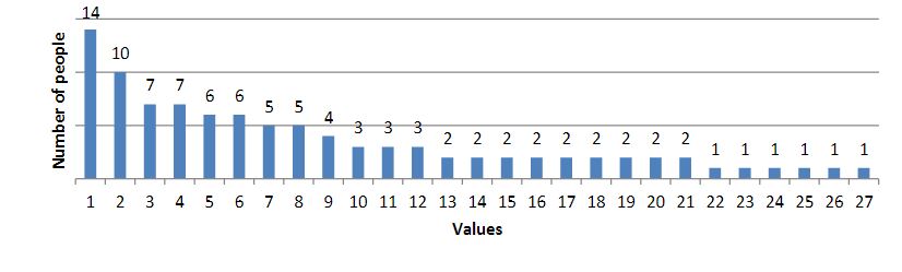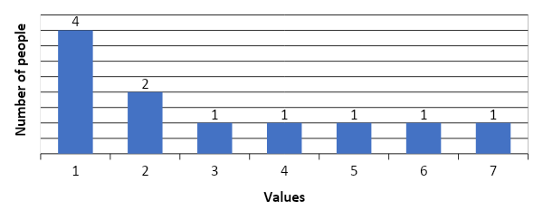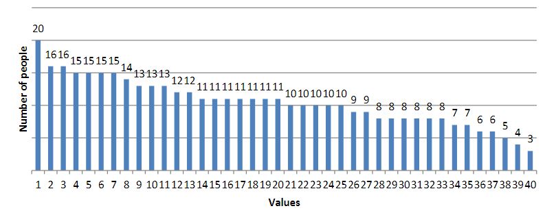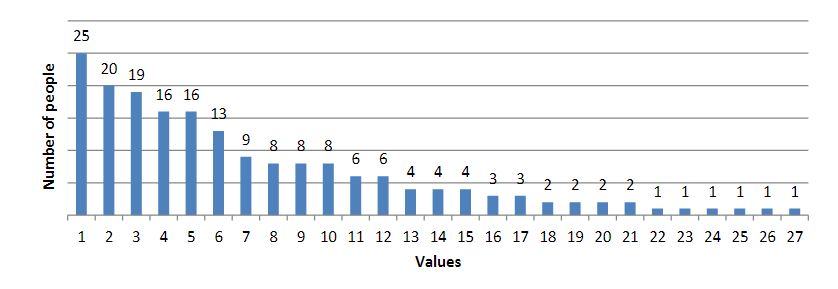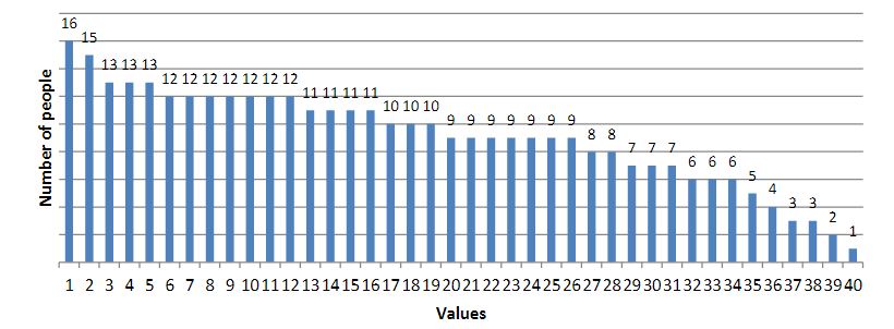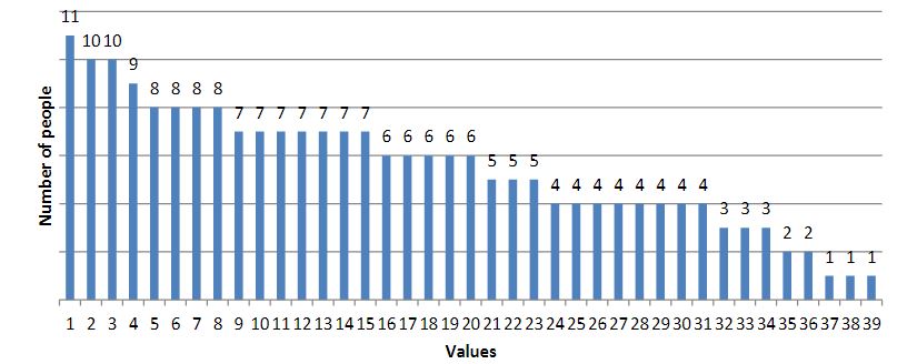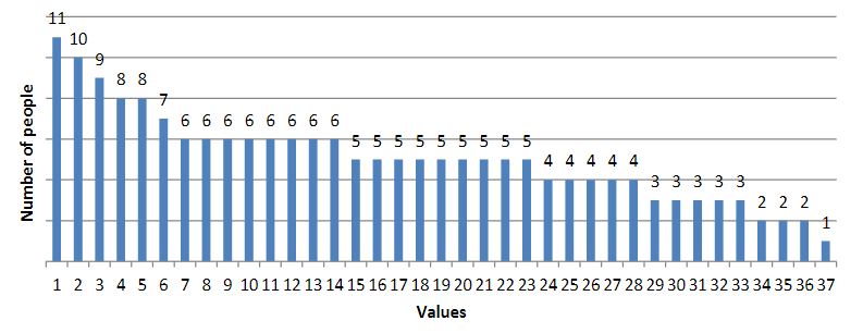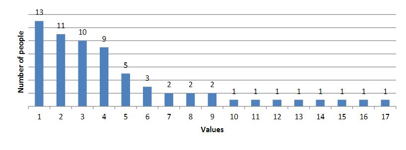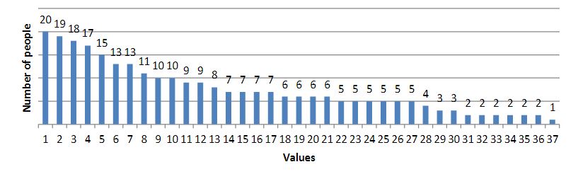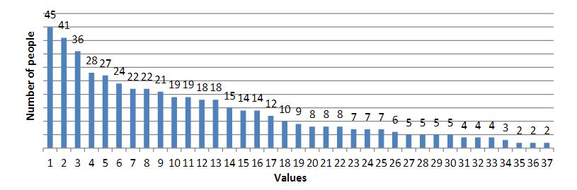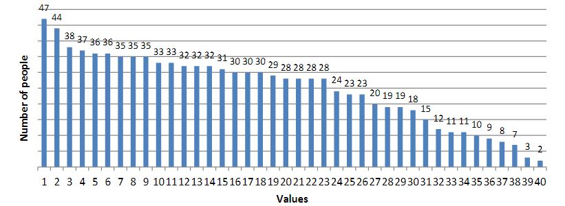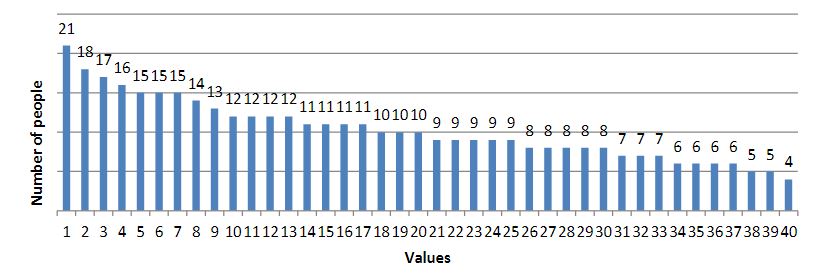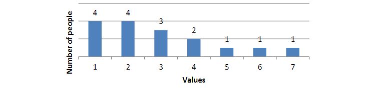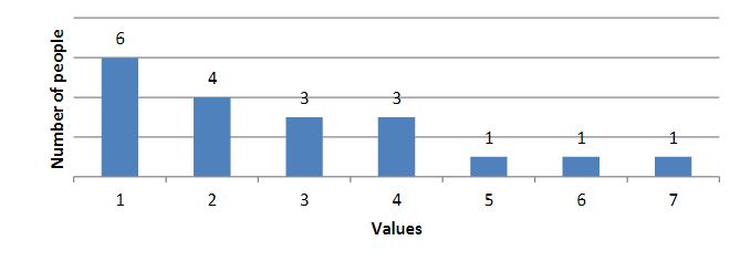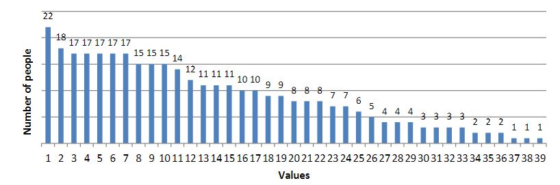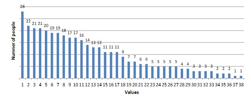 As a result of the survey, we obtained the following results (the results are presented in diagrams; the numbers indicate the number of people who chose this value):
