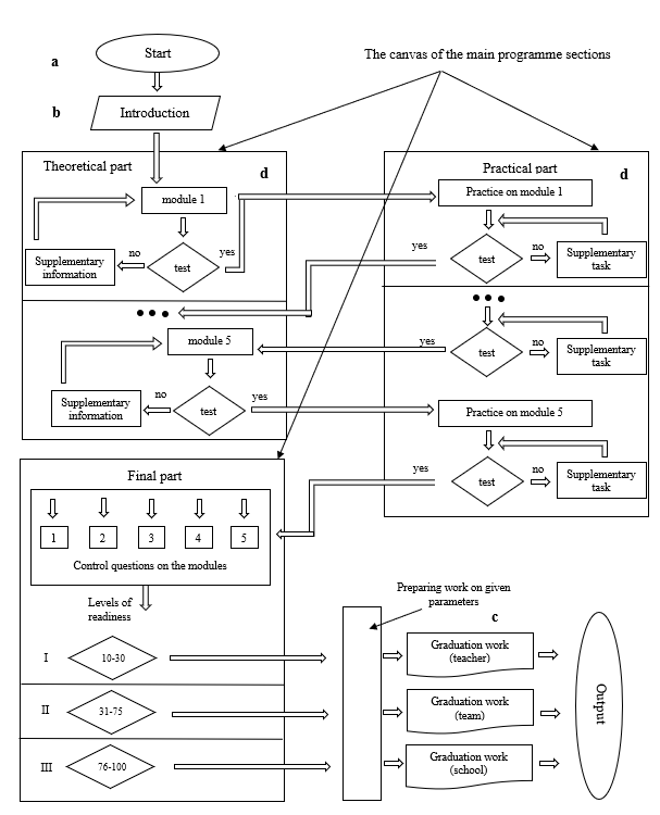 Within the framework of the paper the format of mastering and acquisition of the material in this flowchart has not been presented as an algorithm.