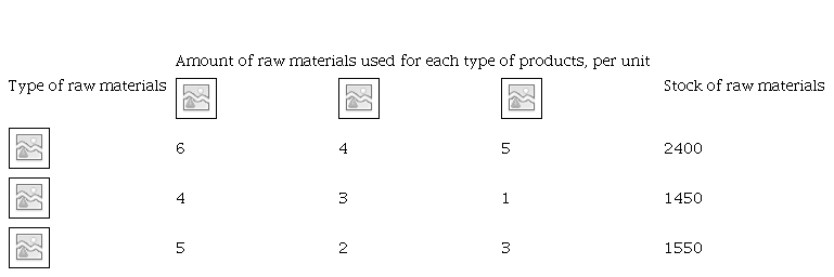 Denoting the planned amount of the first, second and third types of products as x1, x2, and x3, respectively, we get a system of three equations: