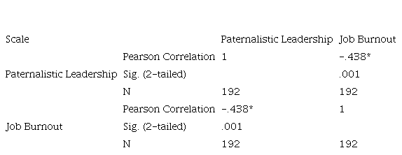 Analysis Results for the Degree of the Relationship between Paternalist Leadership and Professional Burnout