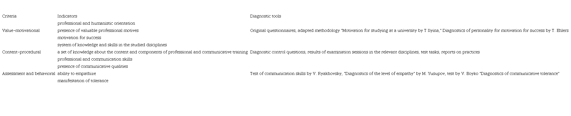 Taking into account the hypothesis of the research, we present a set of criteria and indicators of PCR of future social workers and the corresponding diagnostic tools in Table 1.