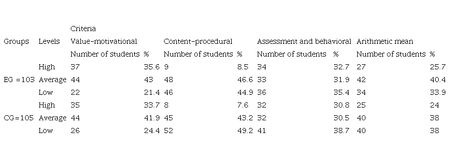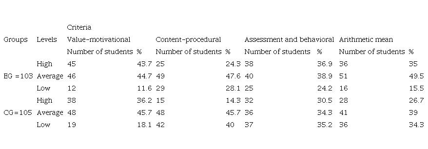 The results of the diagnostics of the content-procedural criterion at the final stage of the study are presented in Table 4.
