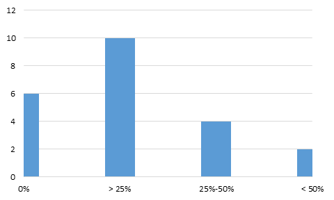 In relation to the weight of EFL in EMI assessment, there is a clear preference among teachers (48%) to consider language up to 25% out of the students´ final grade. It is also worth highlighting the number of teachers (29%) who decide not to consider the use of EFL in order to assess the students. Less than a fifth of the teachers (19%) consider language aspects between 25-50% (19%) and very few teachers (9%) claim that they range it over 50%: