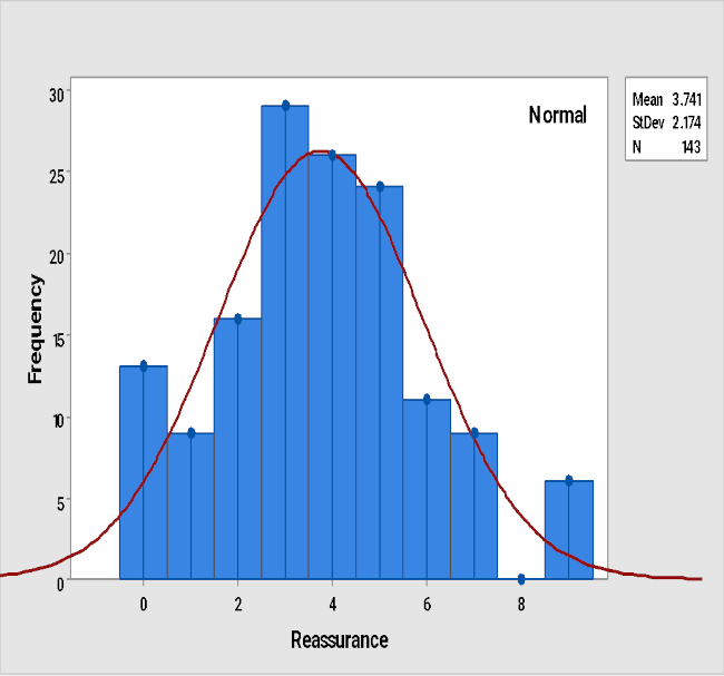 Furthermore, the normality of the score distribution of the different constructs of cyberchondria was shown in the following figures: