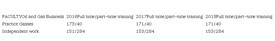 The basic academic disciplines determine the content of professional training at the branch of IUT in Surgut: mathematics, physics, foreign language, electrical engineering, thermodynamics, etc. and academic disciplines of specialization: oil and gas geology, exploration of wells and reservoirs, collection and preparation of good products, development of oil fields, etc. Methodological and methodological development of curriculum for disciplines at the Branch of IUT is based on the curriculum. The curriculum includes a list of disciplines studied and the form of control, credits, the time allotted for the study of disciplines, distribution of hours by semester, duration of study by semester, etc. (Gregory & Lodge, 2015; Hamzah et al., 2021).