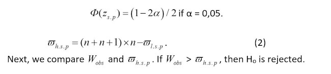 Then, the testing was performed in accordance with the Wilcoxon signed-rank test. We calculated = 980, then found