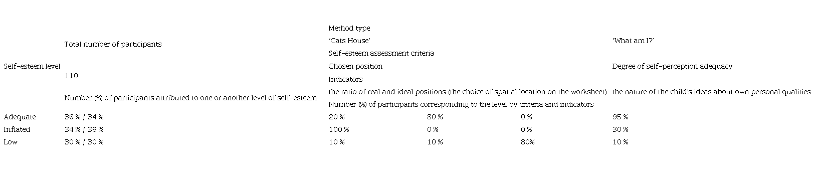 The criterion characterizing self-esteem was the degree of adequacy of ideas about oneself, indicating the nature of the child's ideas about own personal qualities.