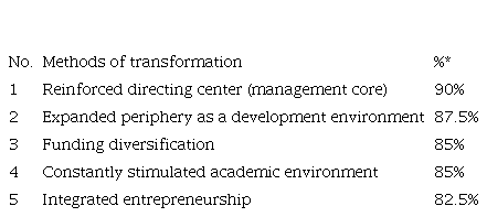 Research hypothesis: transformational change in universities is a prerequisite for the effective transformation of these universities into entrepreneurial universities.