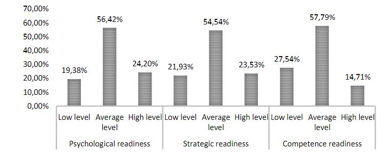 Thus, only 14,71% of future teachers are characterized by a high level of development of competence readiness for continuing education, implying their adequate understanding of not only the need to continue acquiring knowledge independently but also the intrinsic need for self-development and self-actualization in the selected field of professional and teaching activity.