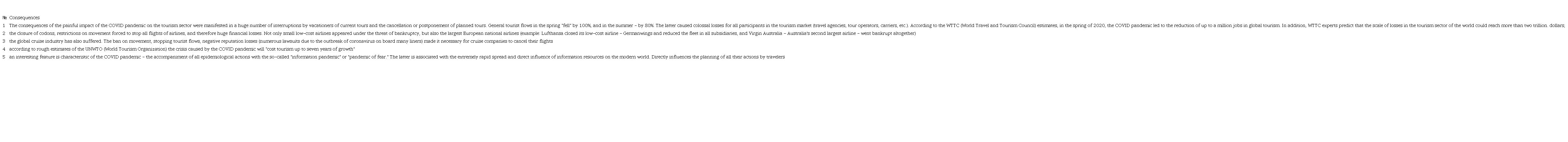 As UN Secretary General Antonio Guterres noted in his speech: "... it is so painful to see how the COVID-19 pandemic is devastating the tourism sector." None of the specialists in the field of tourism undertakes to assume when the collapse of the tourism industry will end, because everything depends on the improvement of the situation with the incidence of diseases and the lifting of the ban on movement. At the moment, most countries in the world are only increasing quarantine. Uncertainty regarding the lifting of travel bans predetermines the impossibility of developing tactical and strategic plans for the development of the tourism sector. Even the already upcoming 2021 for tourism enterprises is characterized by complete uncertainty. In the event of a full restoration of all socio-economic processes, the lifting of restrictions, tourist enterprises will have to "work off debts", that is, provide services for the tours postponed from last year.