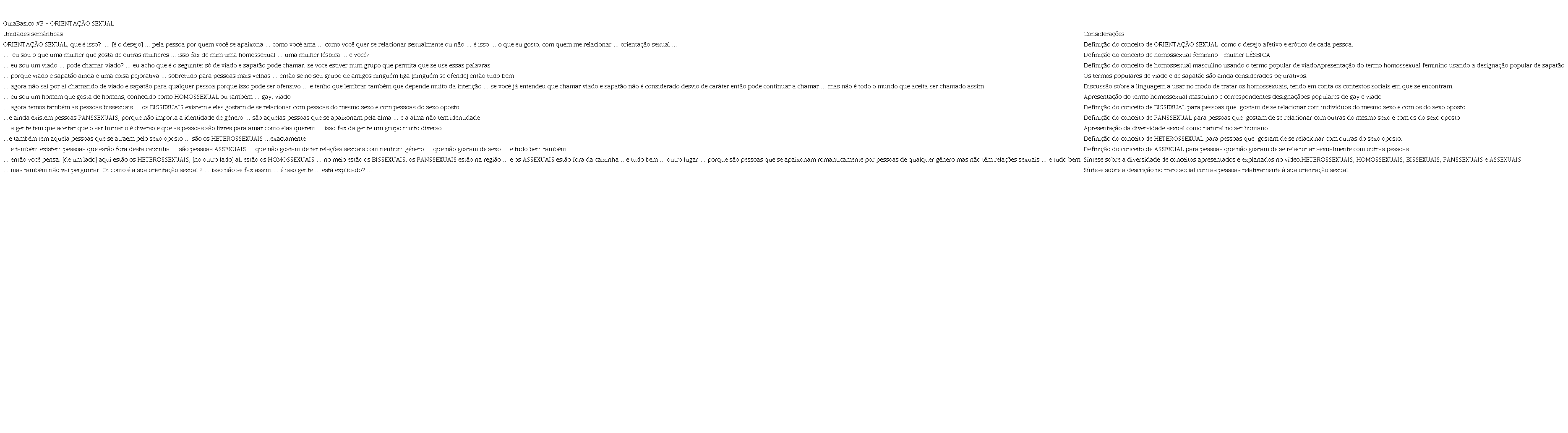 Para considerações acerca do desconhecimento do conceito de orientação sexual considerou-se a subcategoria ORIENTAÇÃO SEXUAL (N).