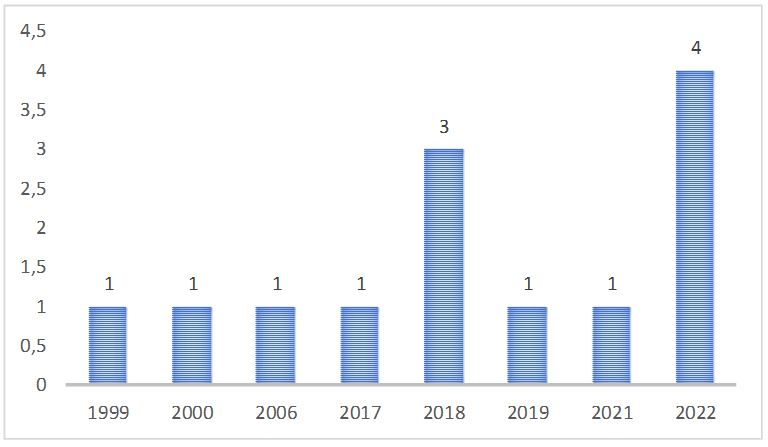No Gráfico 1 a seguir, está representada a distribuição dos artigos no período analisado, de 1999 a 2022.