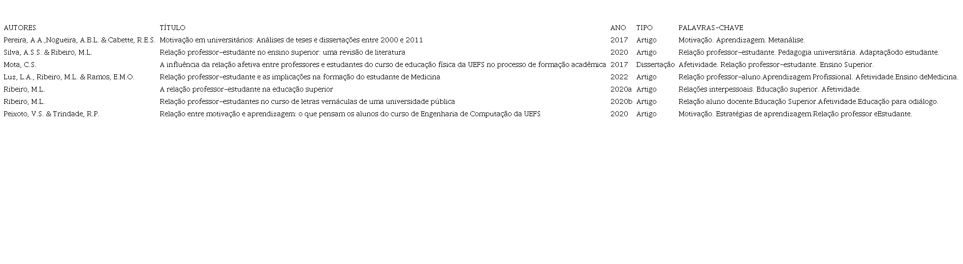 Palavras-chave: Aprendizagem, Ensino Superior, Motivação, Relação professor e estudante, Revisão de literatura.
