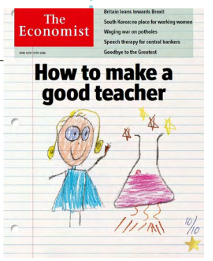 De modo geral, o boletim Aprendizagem em Foco evidencia uma concepção de professor padronizado, controlado e orientado a partir dos mecanismos de gestão escolar. Essa concepção é externalizada no seu boletim número 19, de outubro de 2016, quando traz estampado em seu editorial a capa da revista britânica “The Economist”, que tem como manchete principal a frase “How to make a good teacher?” (Como formar/“fazer” um bom professor?):
