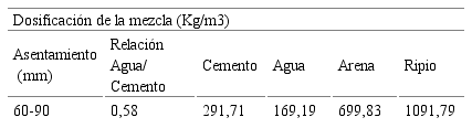 A los componentes de la mezcla de concreto se les realizaron una serie de ensayos regulados por la Norma Técnica Ecuatoriana del Instituto Ecuatoriano de Normalización (NTE INEN) y por la American Society of Testing Materials (ASTM), llegando a obtener propiedades óptimas para alcanzar una resistencia a la compresión de 21 MPa. (Tabla 1).