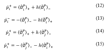 En las simulaciones numéricas de los ensayos experimentales realizados con perfiles de acero de pared delgada, se agrega un parámetro llamado h, con el fin de cuantificar este fenómeno se introducen expresiones que relacionan las rotaciones conductoras del pandeo local. Las ecuaciones (12) y (13) representan las funciones de rotación conductora del pandeo local en el nodo i, y las ecuaciones (14) y (15) en el nodo j.