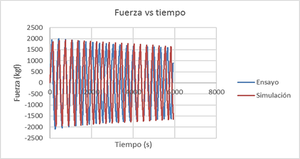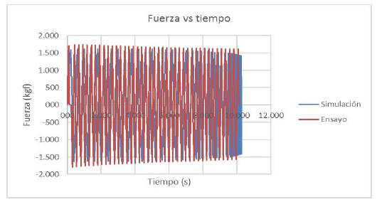 Mediante la comparación de la curva experimental con la simulación numérica, se puede notar que el modelo matemático para FUBC es aplicable y describe con notable precisión el ensayo experimental realizado; la diferencia entre el valor máximo de momento del ensayo realizado y la simulación numérica fue de 1,55%. En la Figura 13 se observa la comparación de la fuerza generada en el ensayo y la simulación numérica.