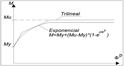 El conjunto de ecuaciones permite representar el comportamiento del endurecimiento cinemático e isotrópico no lineal mostrado en la Figura 3, que al compararlo con otra ley de endurecimiento como lo es la representada de manera tri-lineal, resulta más ajustado a una curva de momento vs rotación de un ensayo experimental real.